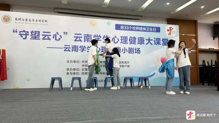 未知的情节、台词、表演,每个人都像被打开的盲盒,在舞台上展现独特的人生故事……10月18日下午,“守望云心”云南学生心理健康大课堂走进昆明冶金高等专科学校,为同学们带来一场以“心愿”为主题的“一人一故事”心理小剧场表演活动,带领大家用戏剧的方式去聆听、感受、体验他人的故事。