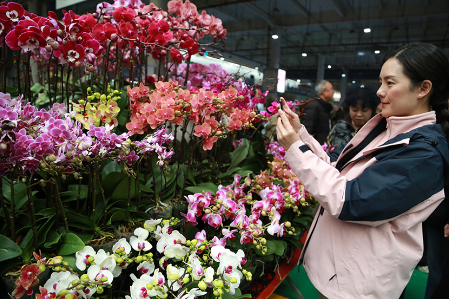 临近春节,云南昆明呈贡区斗南花卉市场里花香浓郁,各色花卉争奇斗艳。顾客的询价声、打包声与馥郁的花香交织,年的脚步跟着花香人潮涌了进来。
