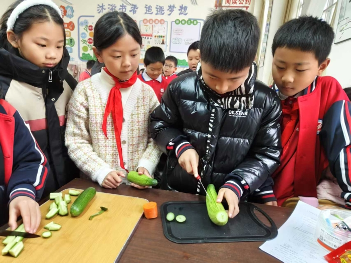 育人实践中,学校坚持教师主导、学生主体,以AI赋能教材、教法与学法创新;坚守家校同心、协同育人,与家长同心共情、携手共育。遵循教育规律和学生成长规律,传承陶行知“教人求真,学做真人”教育思想,构建五育并举、五自修炼、五会成长的“三五育人”模式:以德育重自治、智育重自学、体育重自强、美育重自塑、劳育重自创的“五自”路径,培育学生会做人、会学习、会生存、会关心、会创新的“五会”素养。