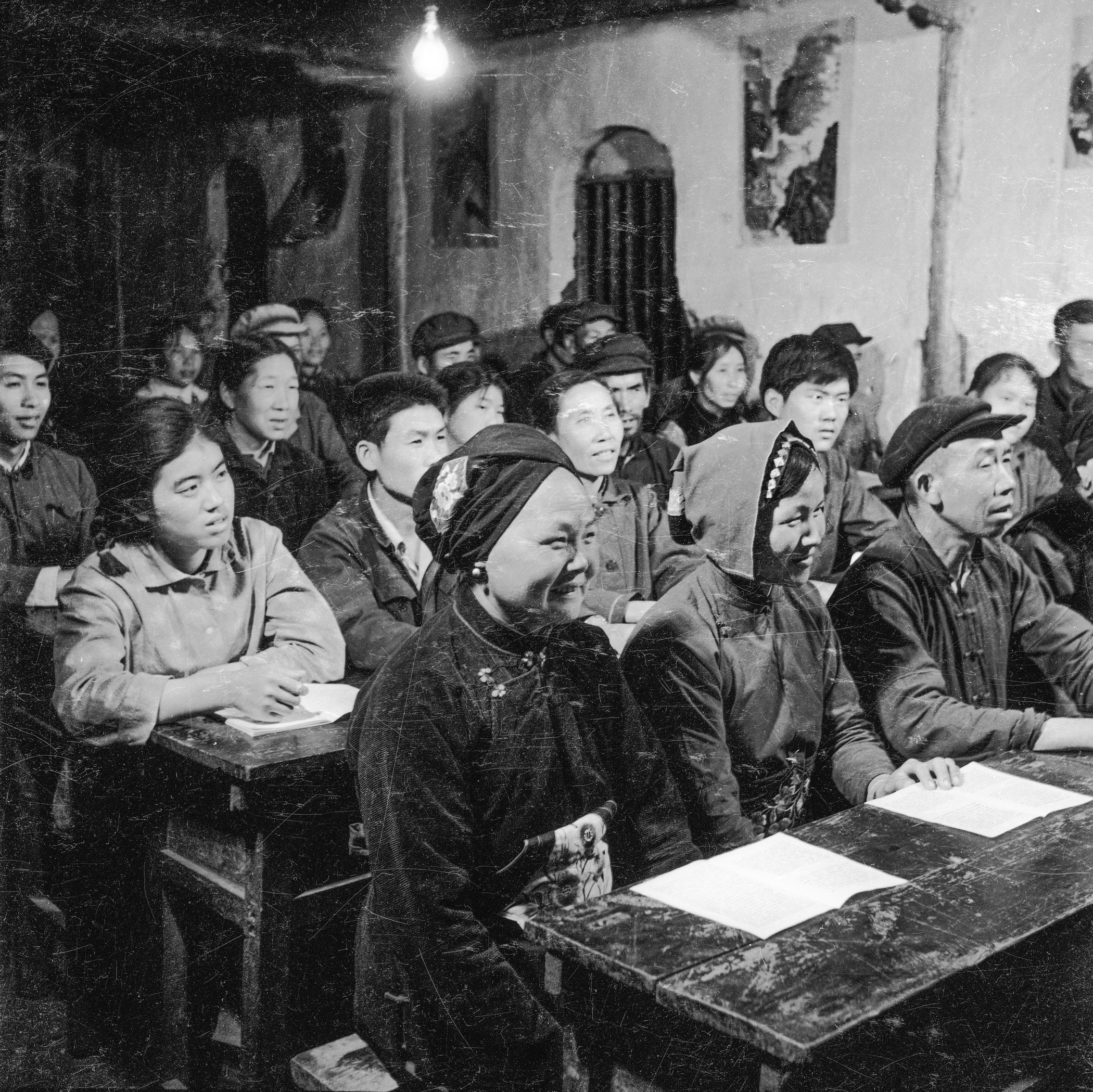 20世纪70年代,昆明郊区的农民在夜校学文化。刘建明摄