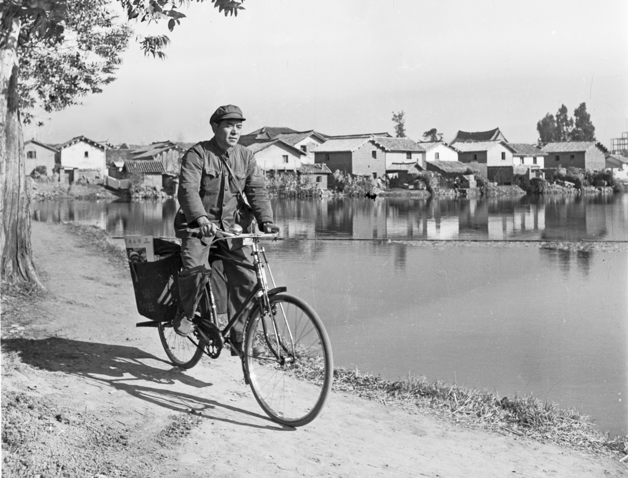 20世纪70年代,昆明市邮政局的投递员骑自行车到城郊农村送邮件。刘建明摄