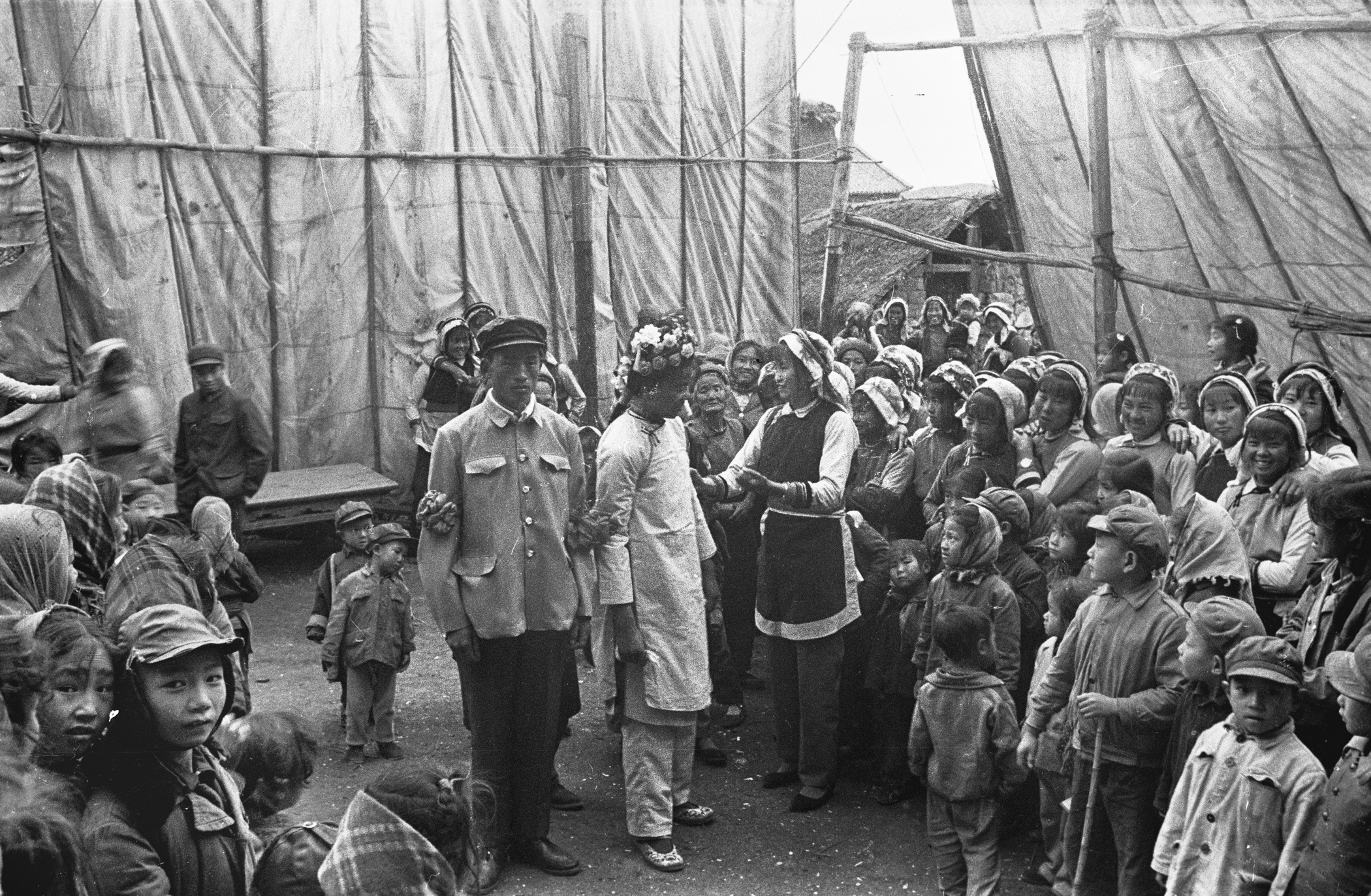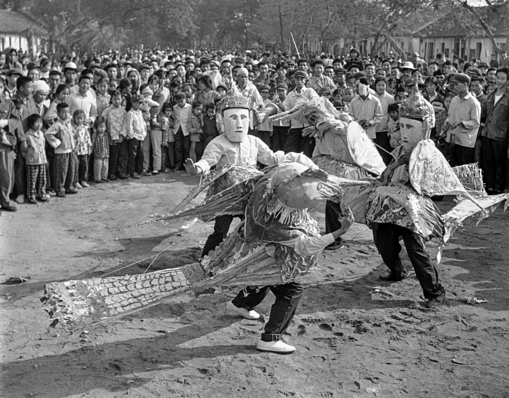 1982年,大理市金梭岛渔民用船帆搭建〝婚庆宫〞,举办简朴热闹的白族婚礼。刘建明摄