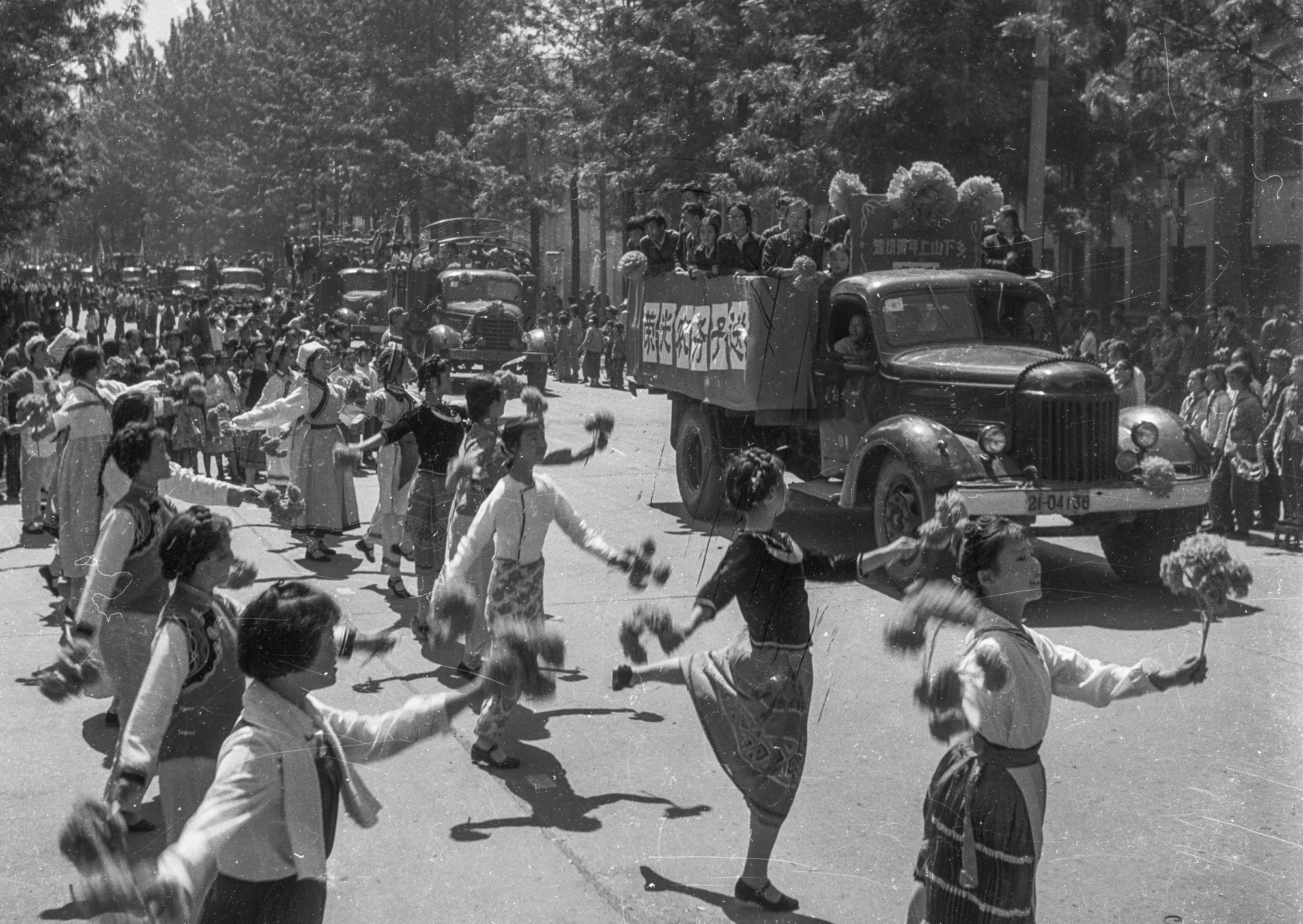 1973年,昆明各族群众载歌载舞,欢送知识青年上山下乡,到昆明市所属郊县区农村插队落户。刘建明摄