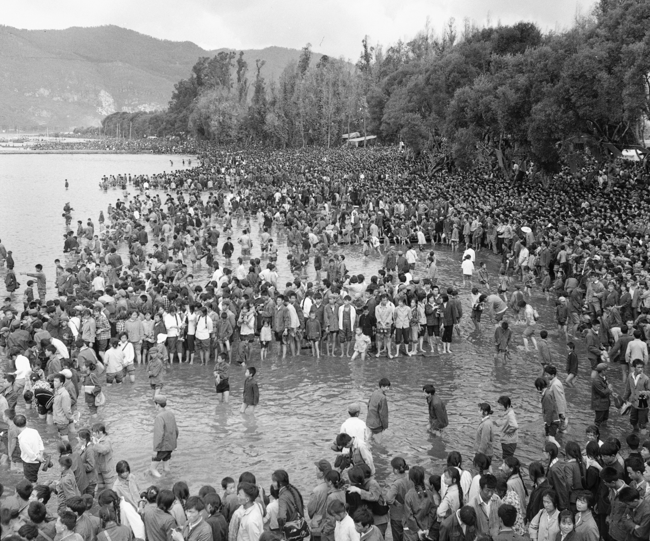1976年7月16日,昆明各界群众10余万人聚集海埂公园,参加纪念毛泽东主席畅游长江十周年的活动。