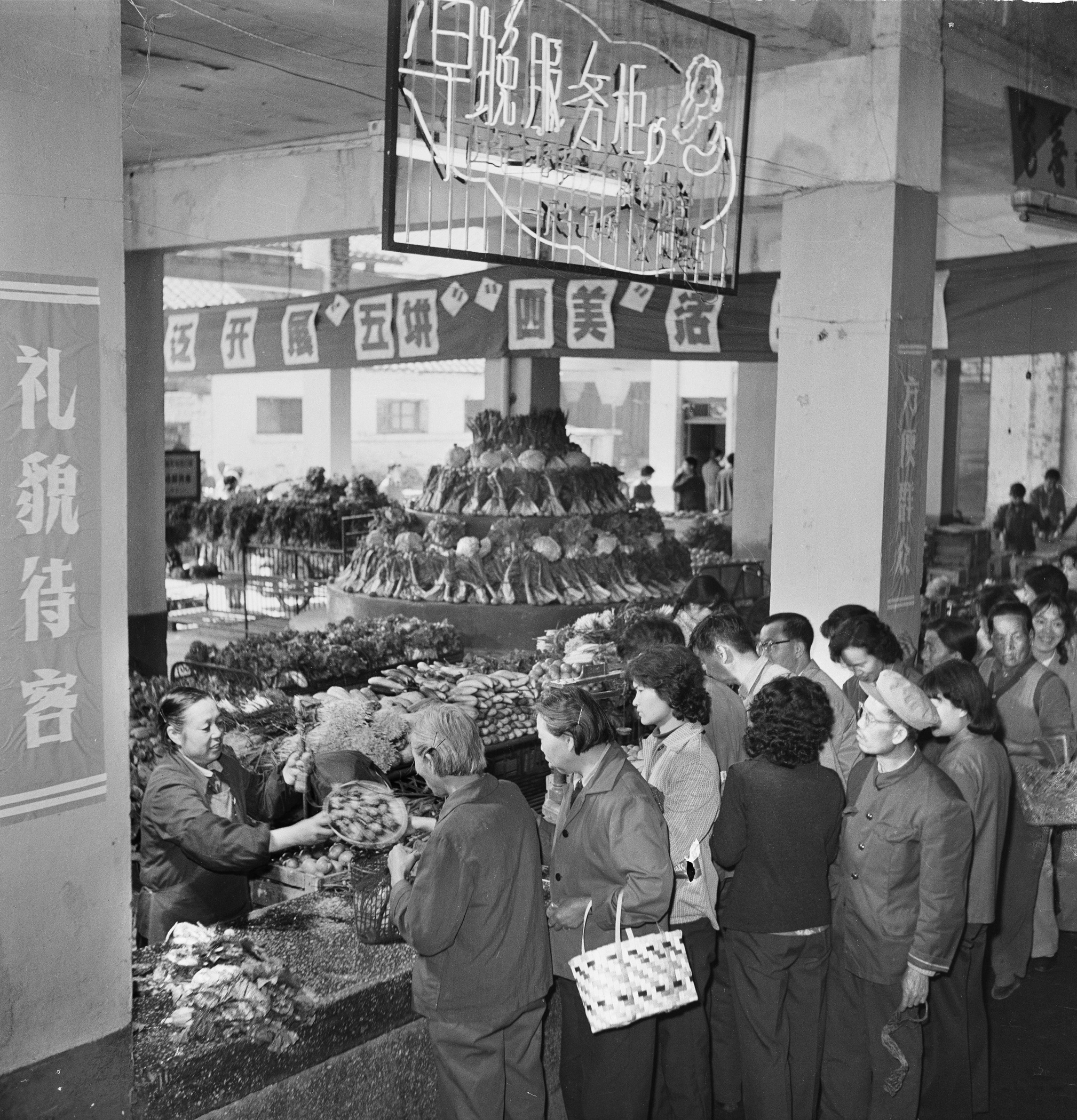 1982年,昆明城区的蔬菜站均为国营单位,宝善街蔬菜站为方便市民,设立了早晚服务柜。刘建明摄