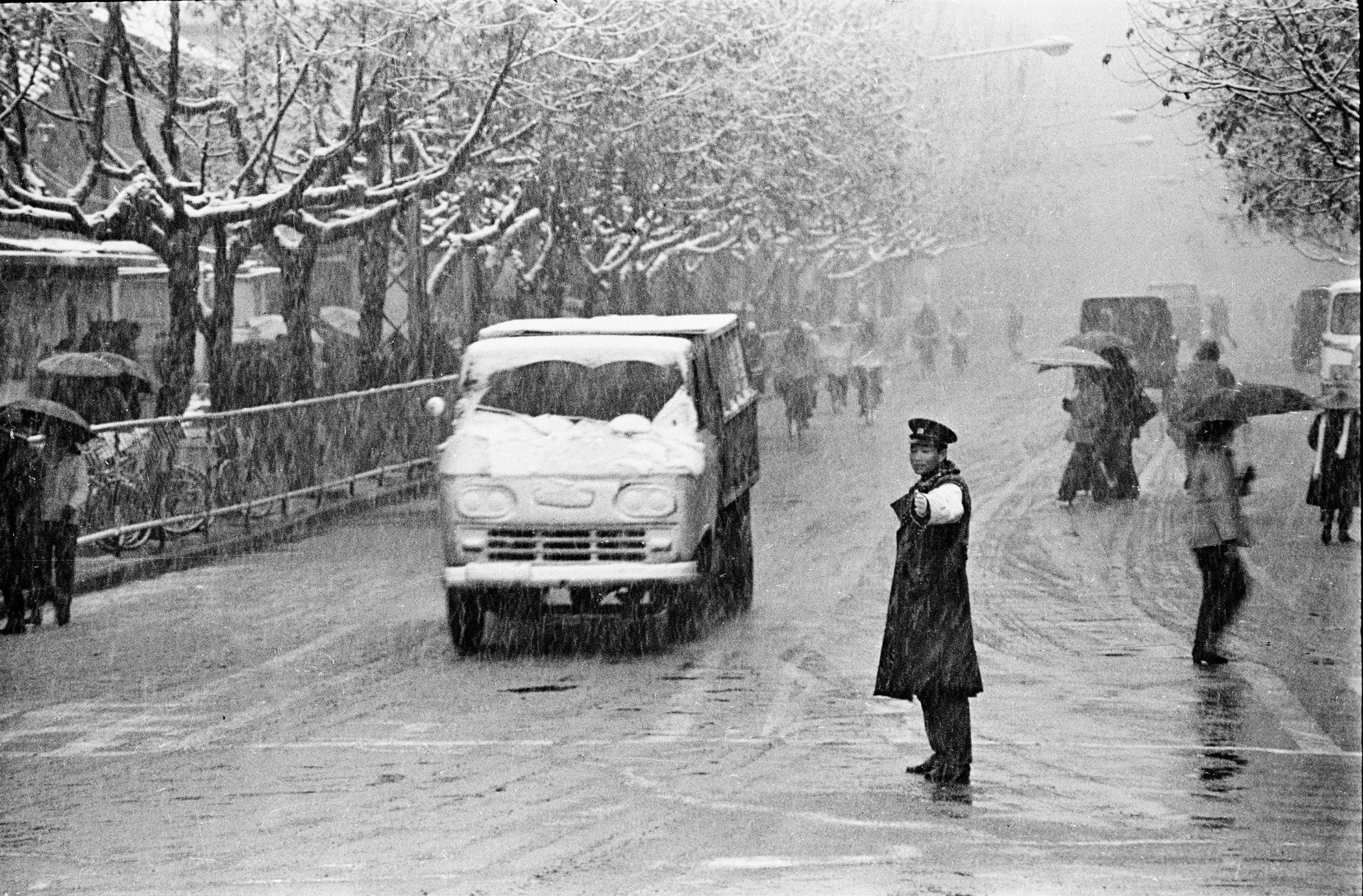 1983年12月27日,一场历史罕见的大雪降临昆明,交警在南屏街冒雪值勤,以确保交通安全。刘建明摄