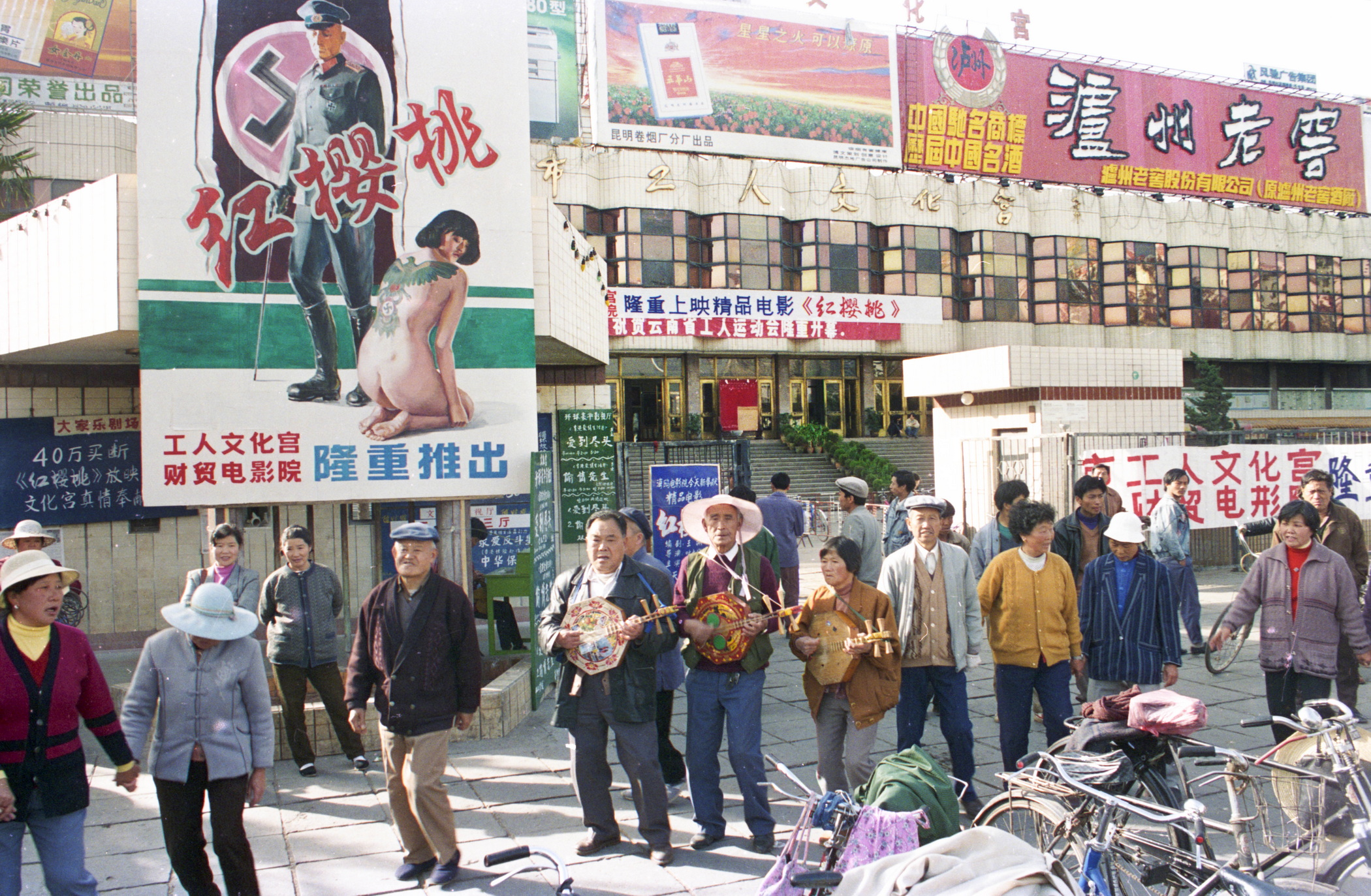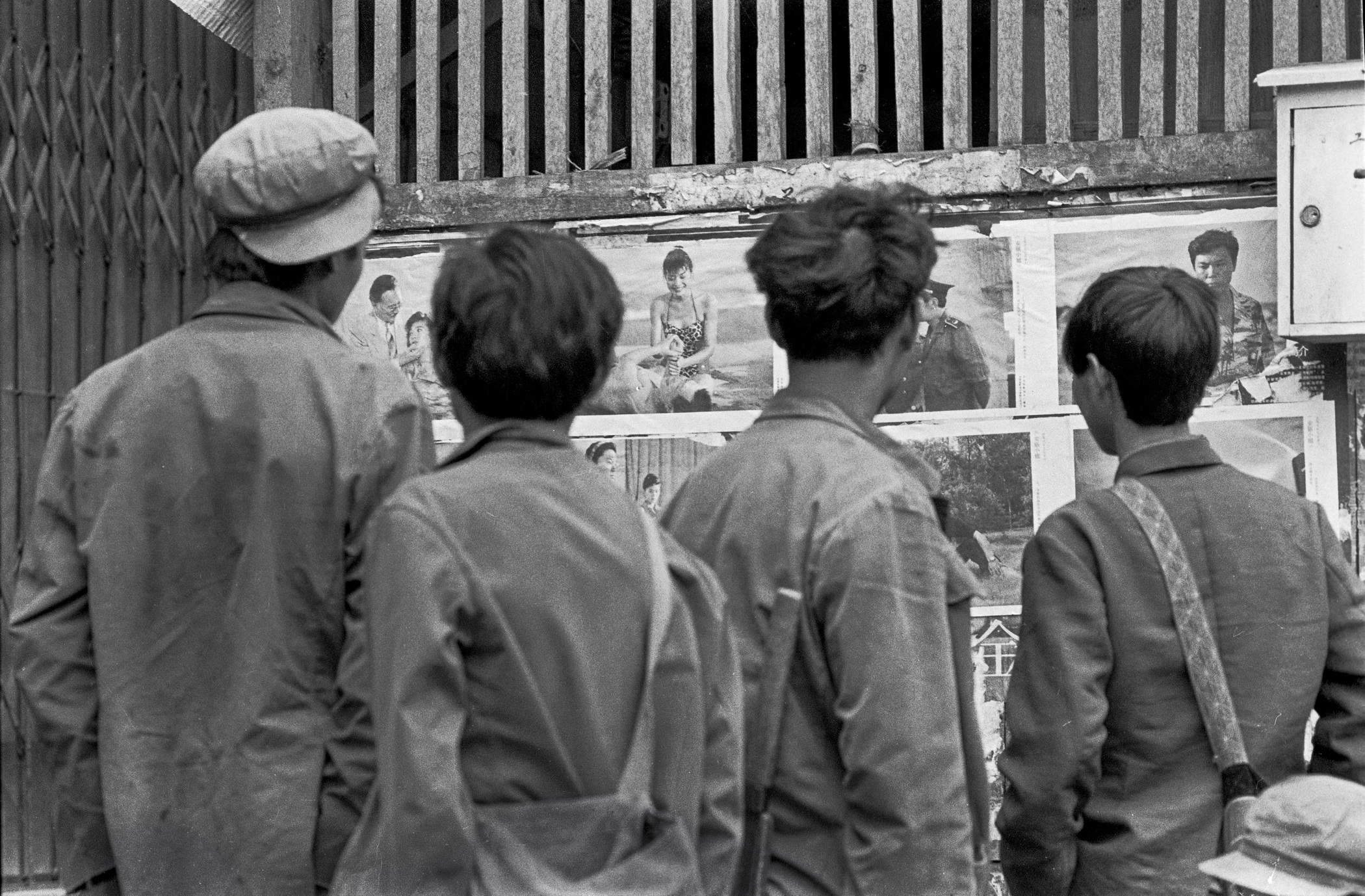 1990年,福贡县城的电影宣传图片,令傈僳族农村青年十分好奇。刘建明摄