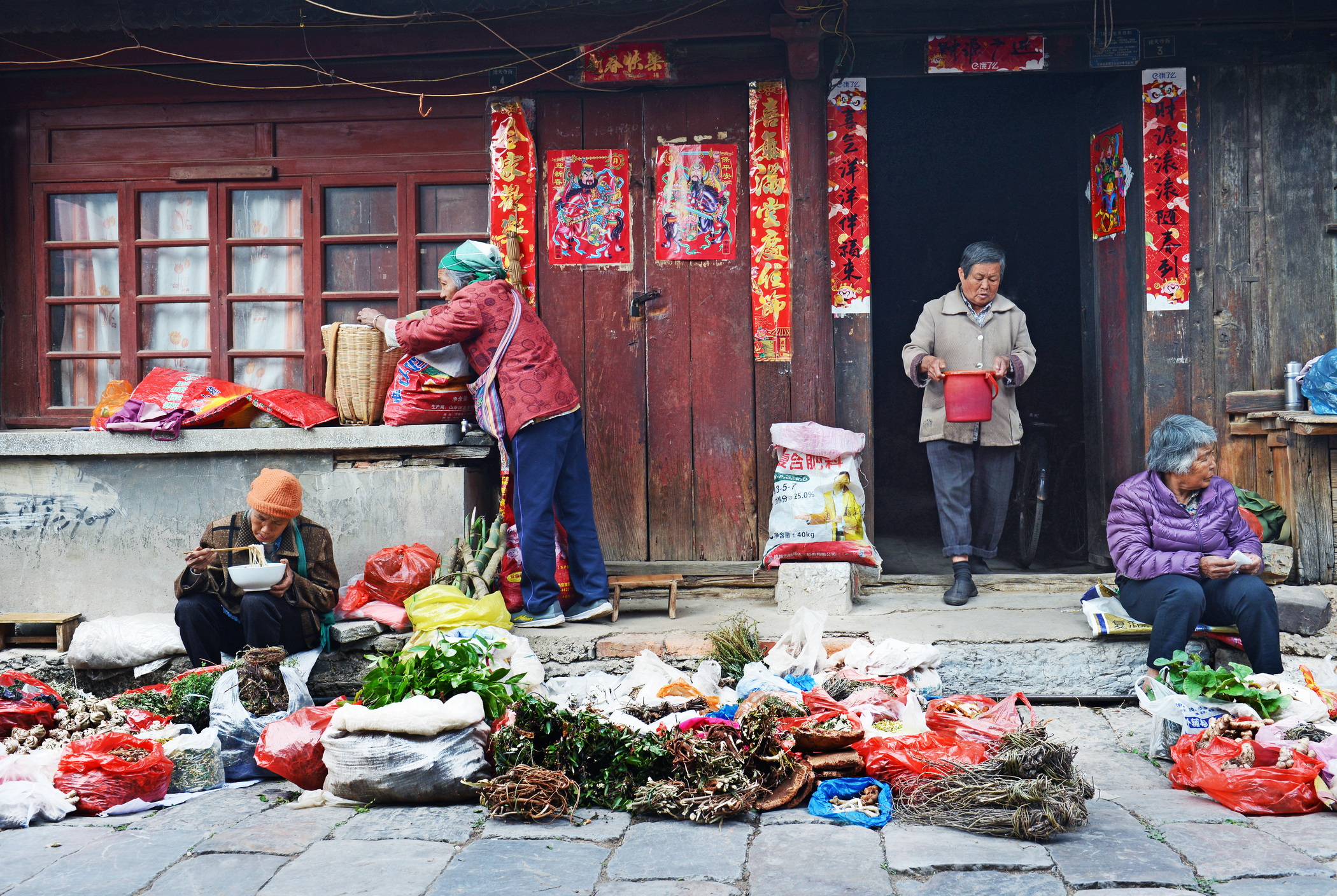 2018年 ,石屏县老城区诸天寺街摆摊卖中草药的老人。刘建明摄