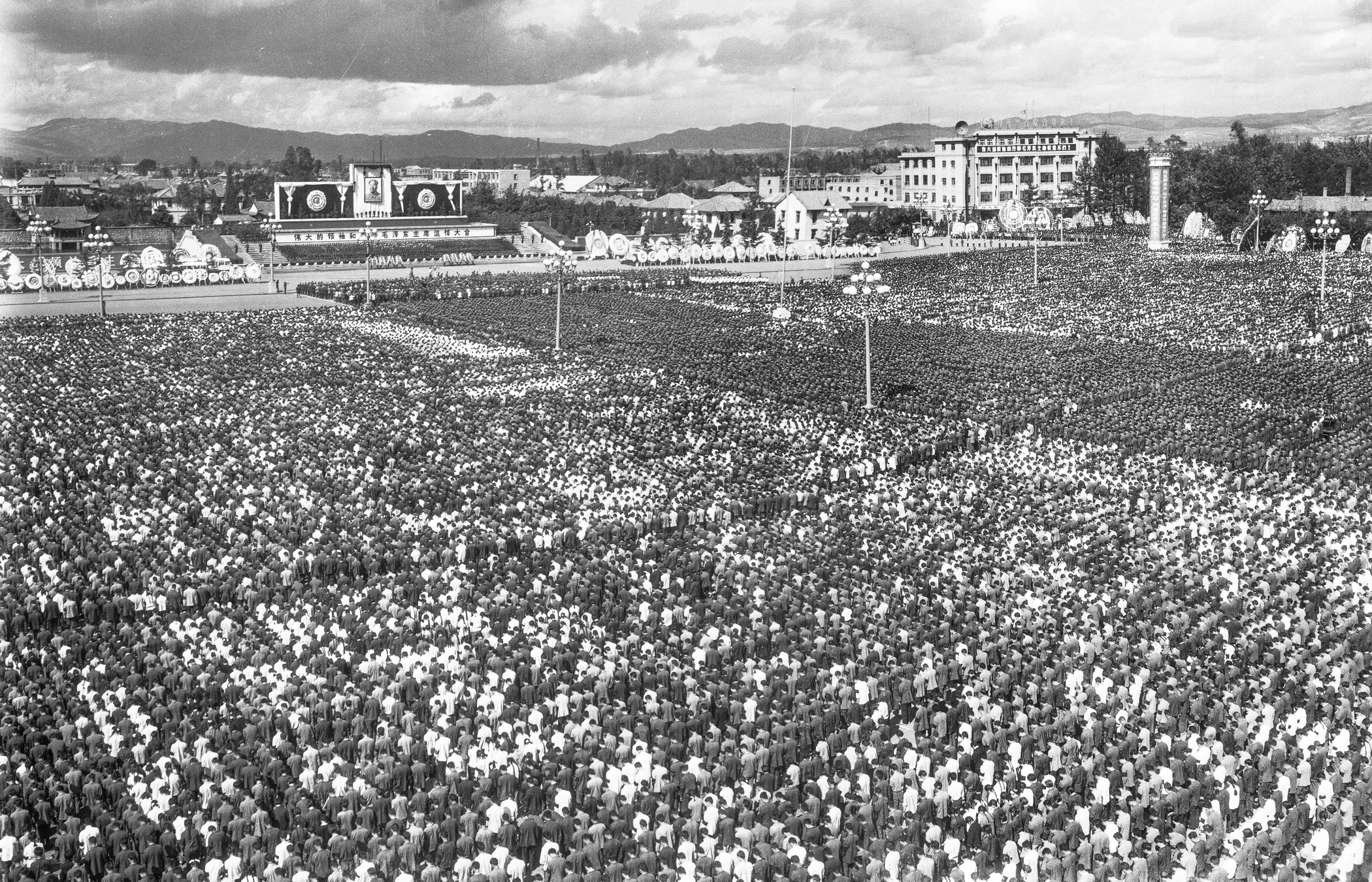 1976年9月18日,云南省、昆明市党政机关、昆明军区机关以及社会各界代表25万人,在昆明东风广场举行毛泽东主席追悼大会。刘建明摄