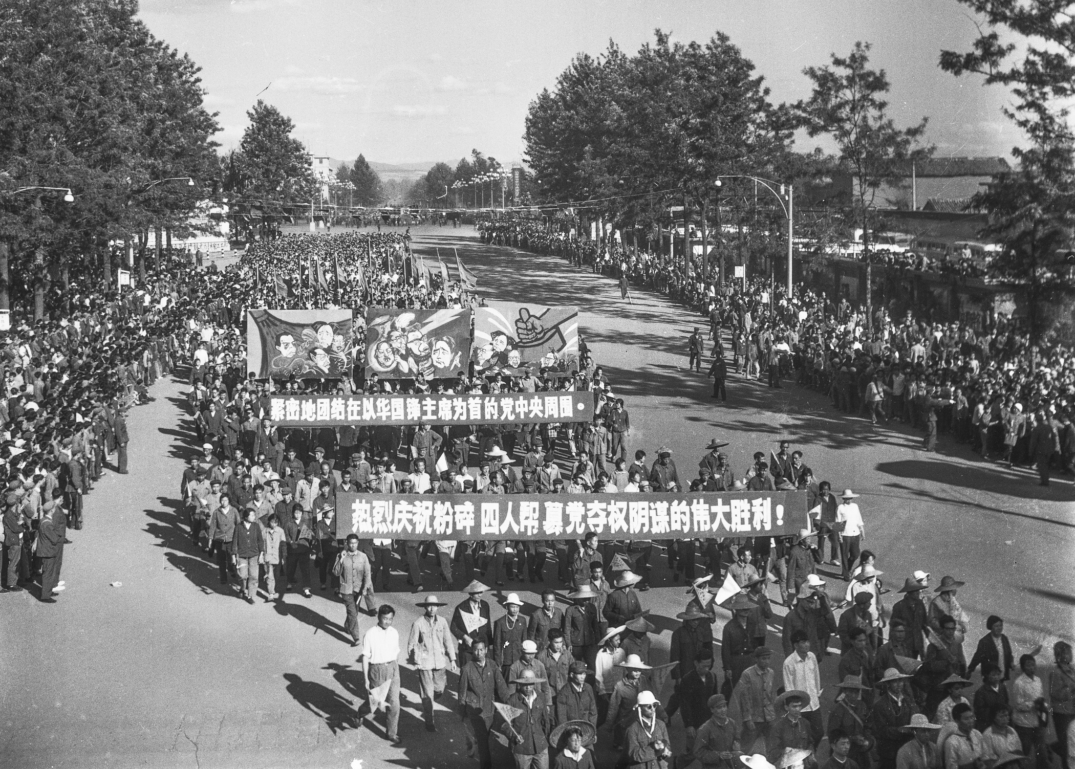 1976年10月23日,昆明各族各界群众举行庆祝粉碎“四人帮”的盛大游行。 刘建明摄