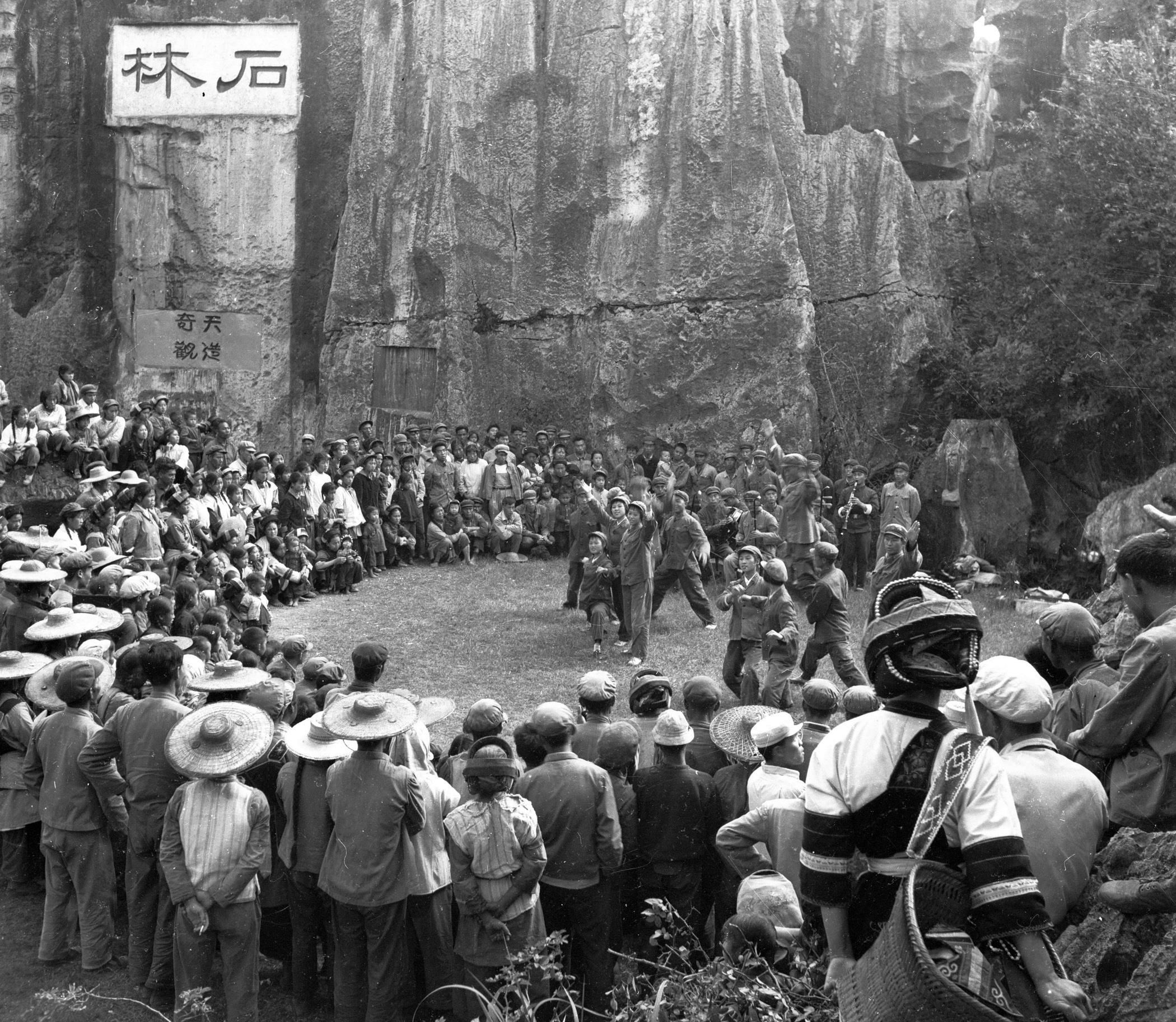 1977年,解放军部队文艺宣传队到路南石林为各族群众演出。刘建明摄