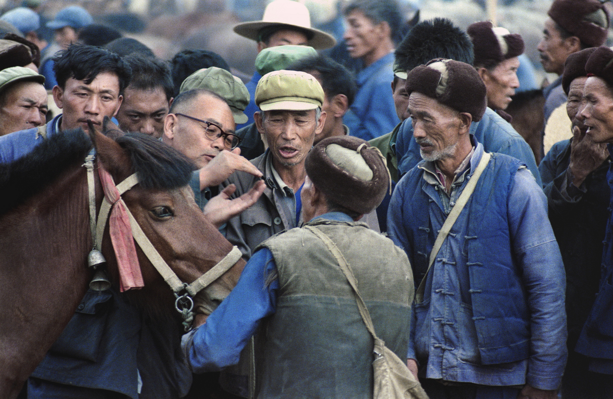1984年4月,一位农大教授在大理三月街牲畜市场上向老乡传授畜牧知识。刘建明摄