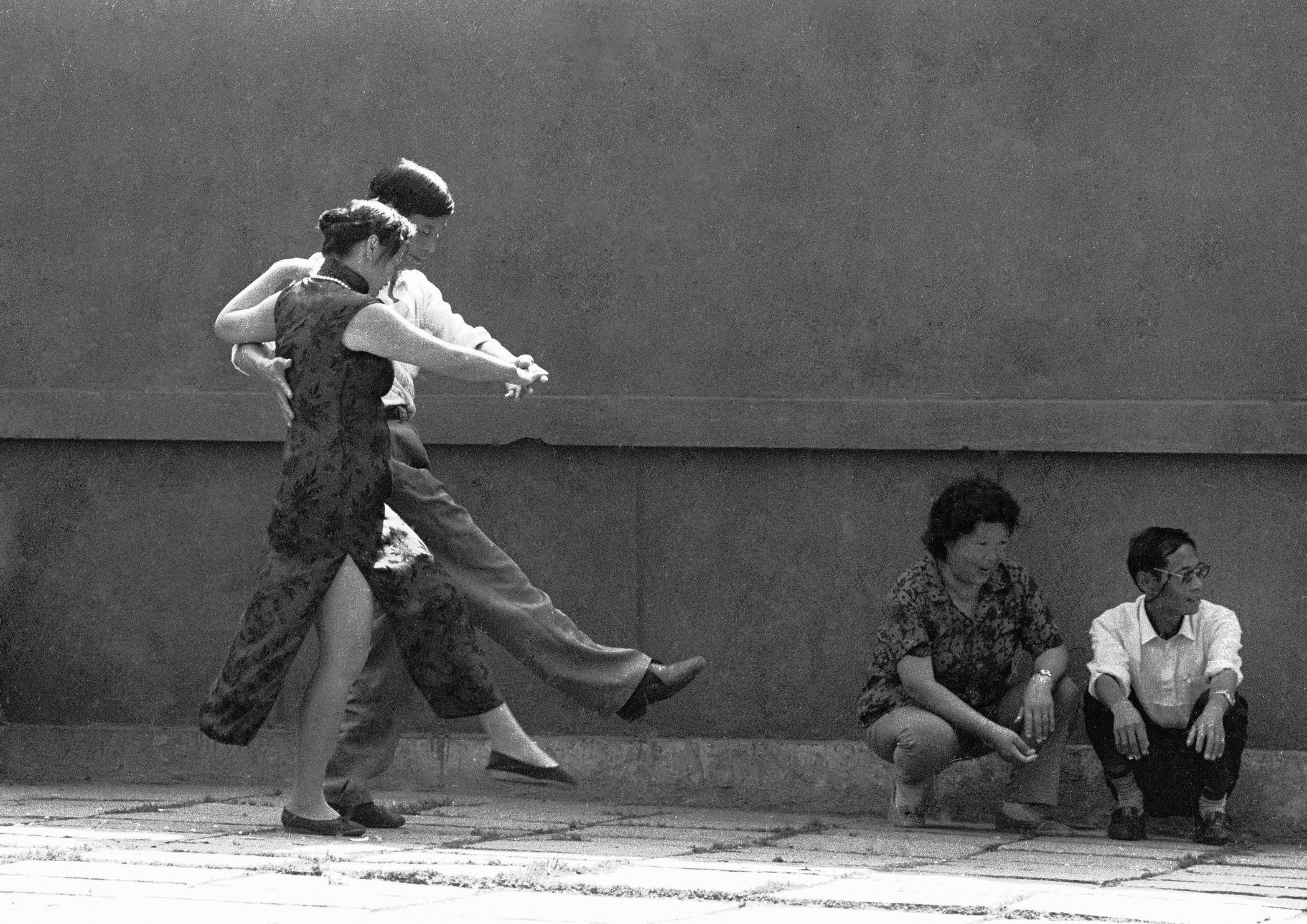 1987年,改革开放让交际舞重回民间,昆明的街头巷尾常可见这样的情景。刘建明摄