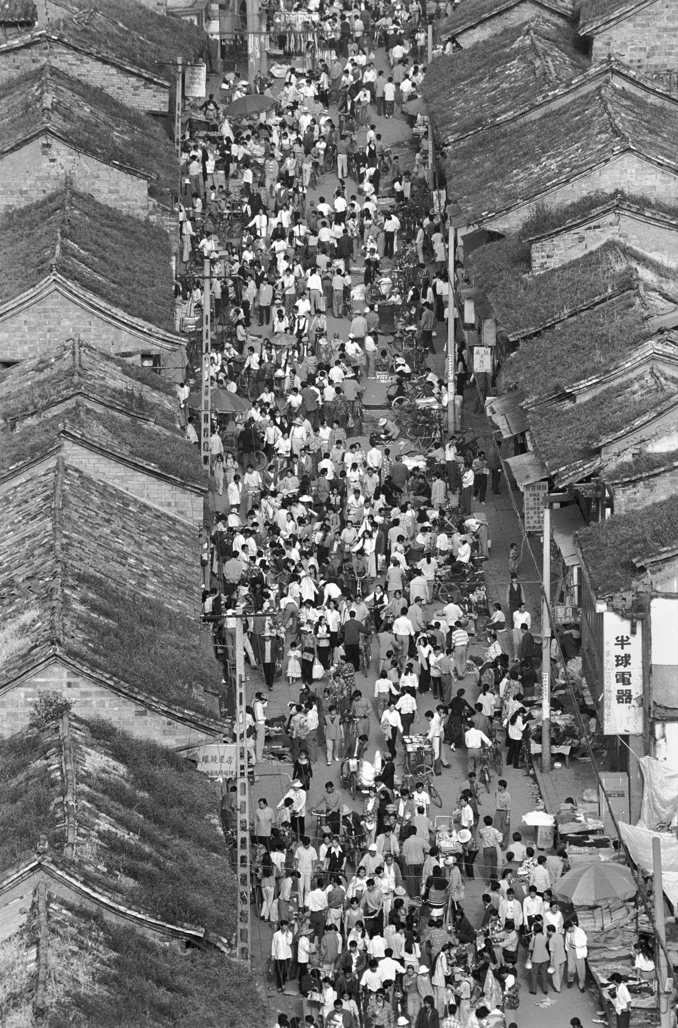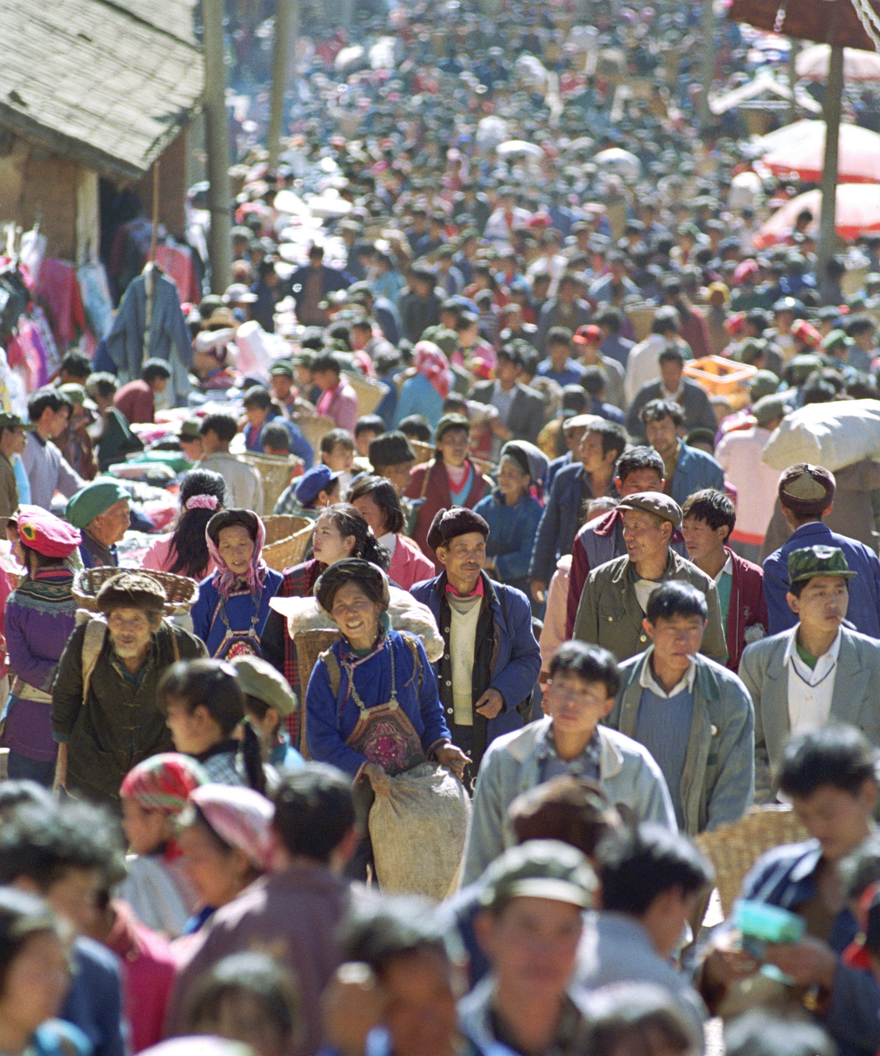1987年,改革开放后农副产品交易开始兴旺,禄劝县撒营盘乡人潮涌动的乡街子。刘建明摄
