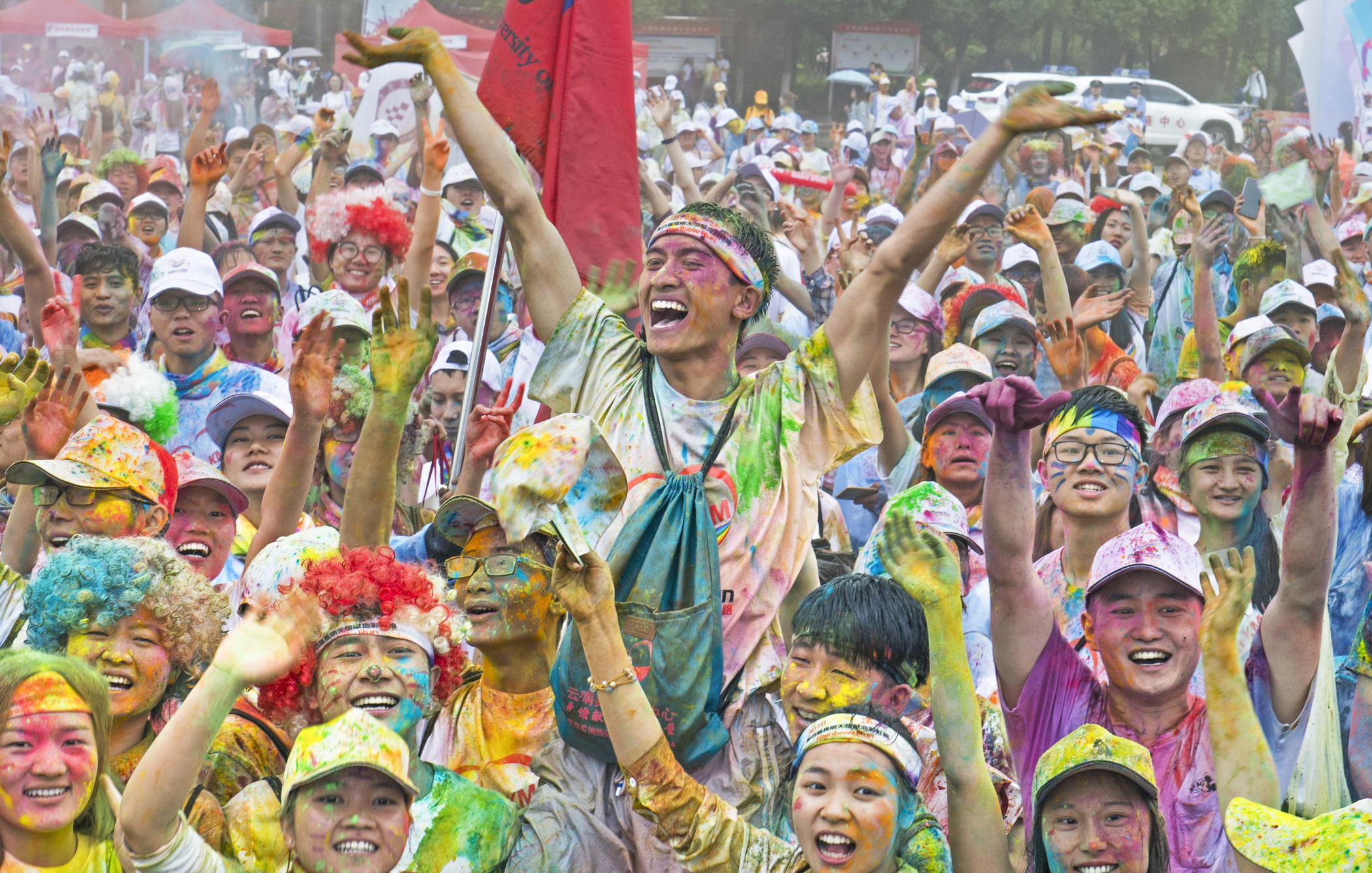 2018年,激情的青春年华,张扬的个性与自信,云南民族大学学生“彩虹跑”活动成了校园里的狂欢节。刘建明摄