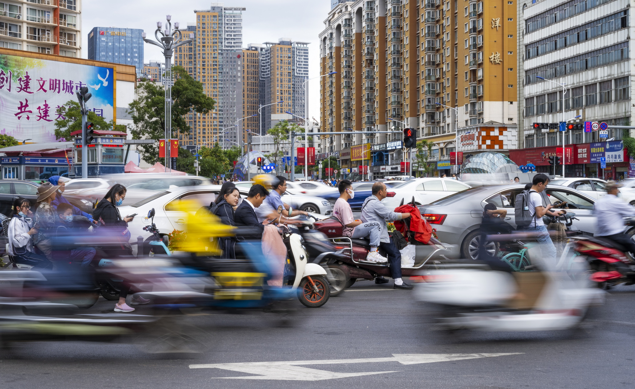 2021年, 昆明市区高峰时段十字路口的繁忙车流,反映了市民交通工具的变化与发展。刘建明摄