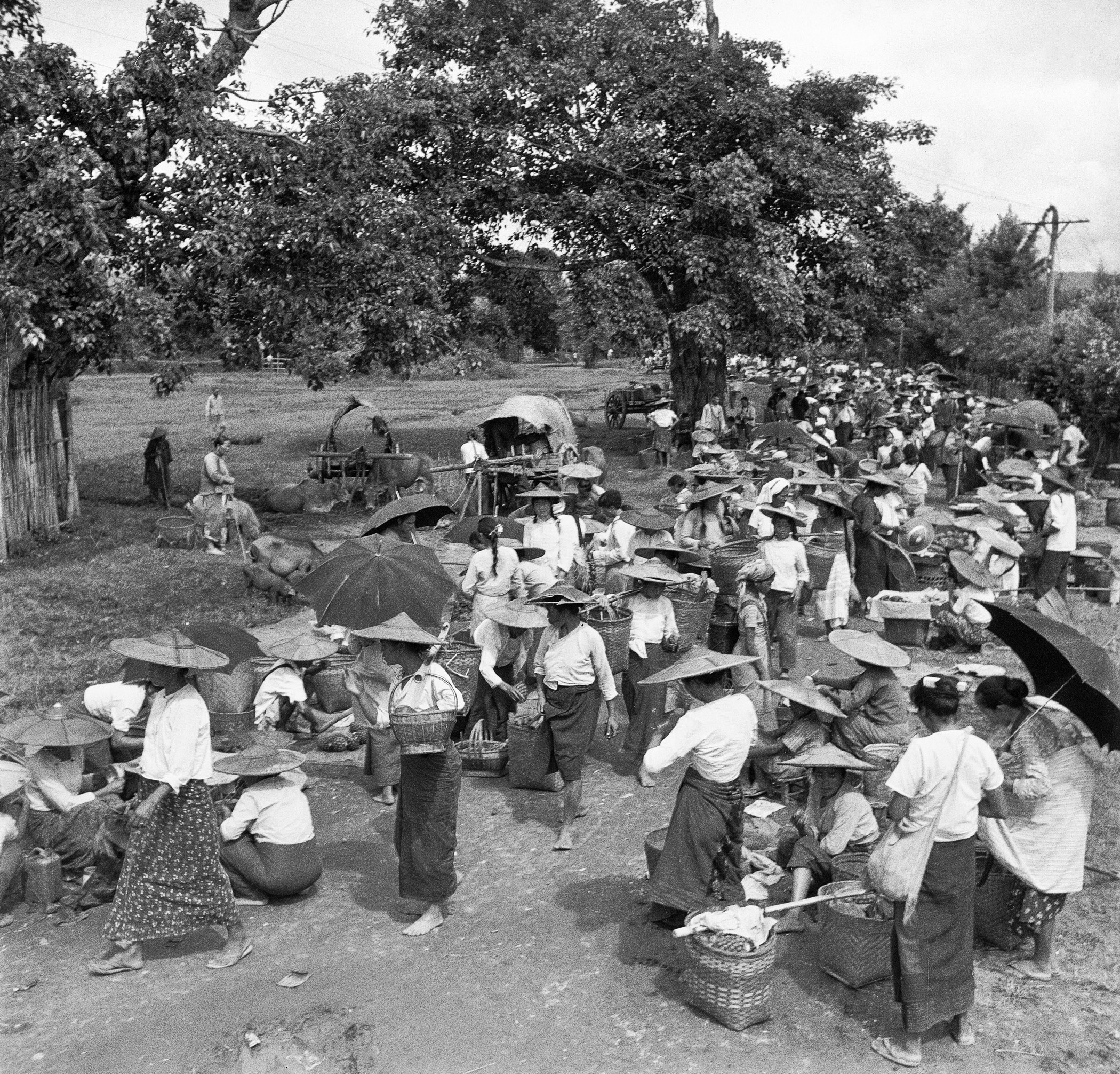 1971年,瑞丽县弄岛乡的傣族群众仍保留着赶街的传统,大青树下的乡街子极具傣乡特色。刘建明摄