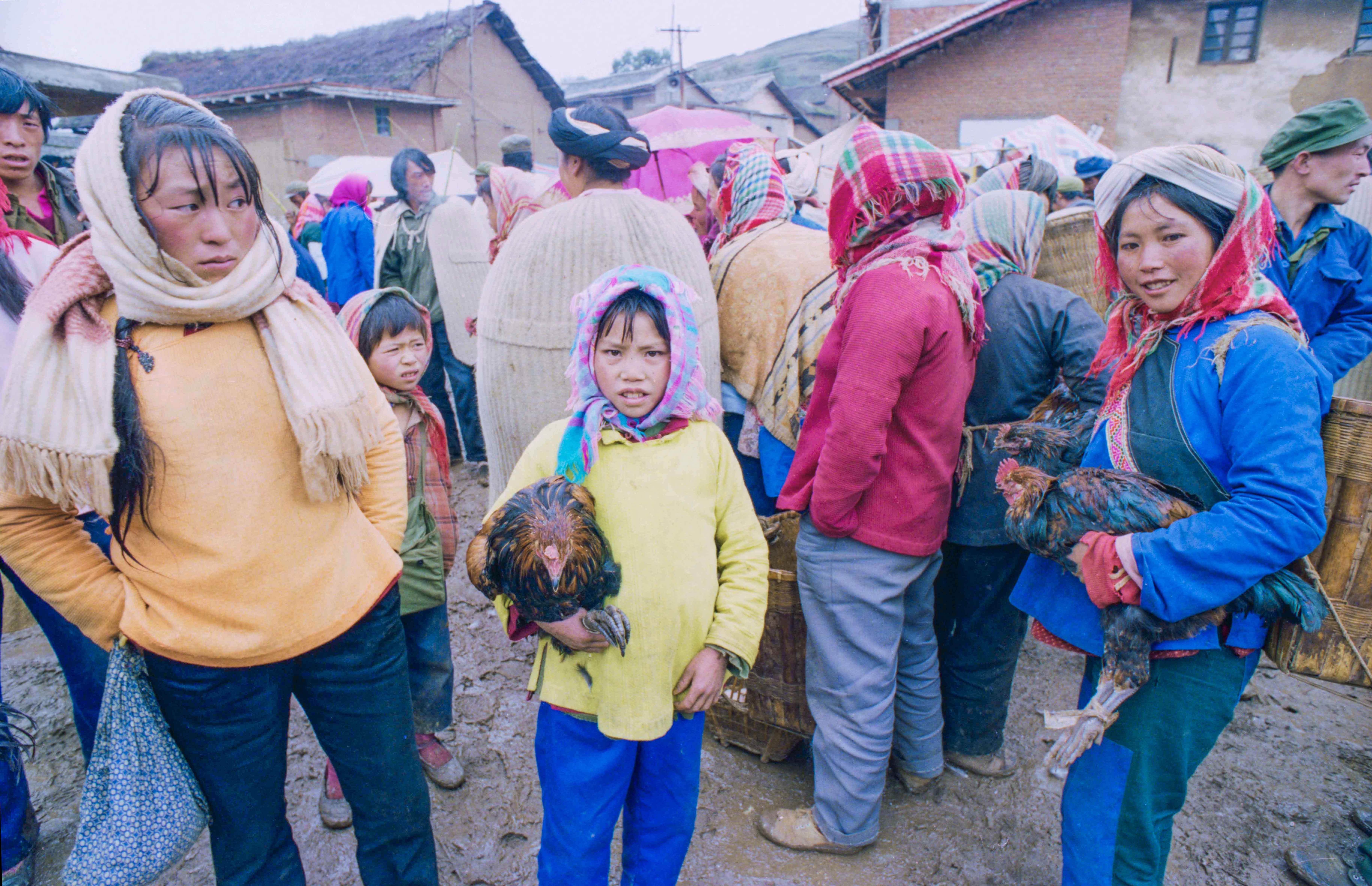 1992年, 昭通市大山包乡,隆冬时节在乡街子上卖鸡的村民。刘建明摄